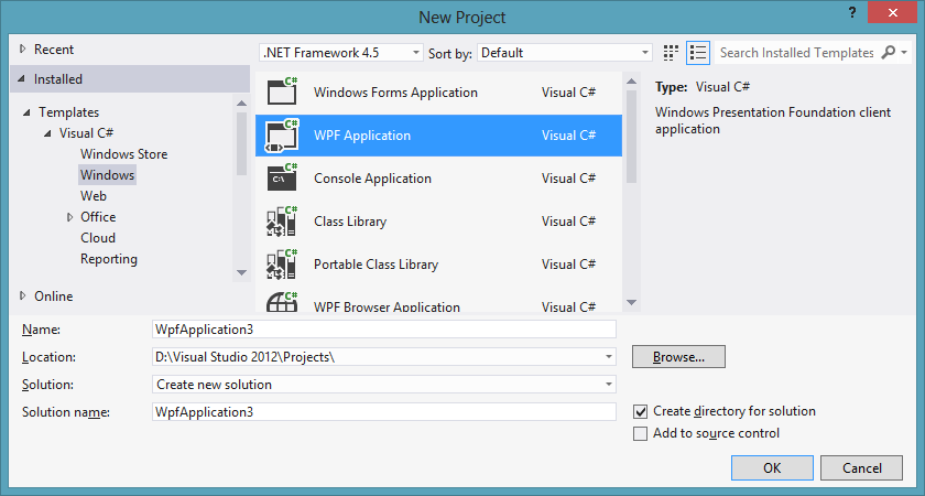 Create a new C# project. (I chose a WPF application which is probably not the best choice but I’m just going to throw this away when I‘m done).